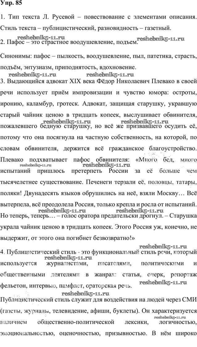Русский язык за 8 класс Быстрова Учебник Инновационная школа Русское слово упражнение 85