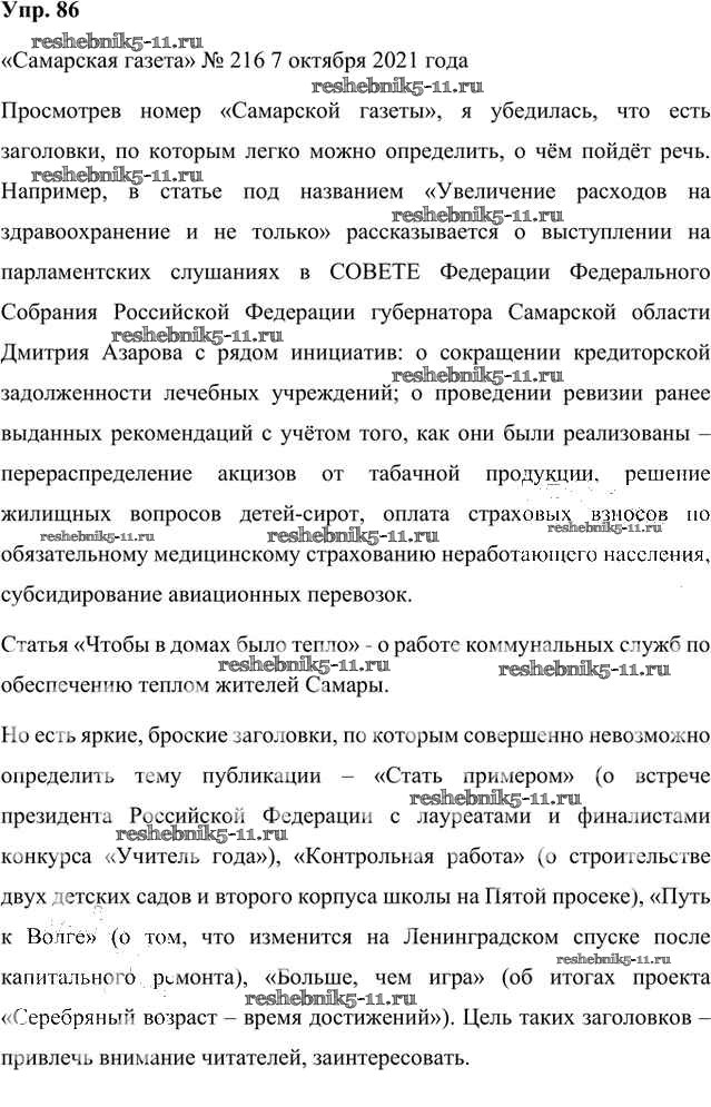 Русский язык за 8 класс Быстрова Учебник Инновационная школа Русское слово упражнение 86
