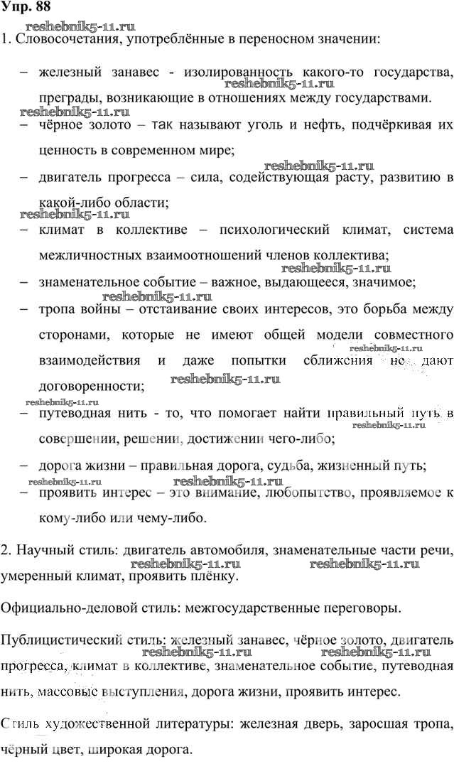 Готовая домашняя работа с ответами по Русскому языку за 8 класс Быстрова, Кибирева, Воителева Учебник Инновационная школа Часть 1, 2 Русское слово 2019 ФГОС - Упражнения 88