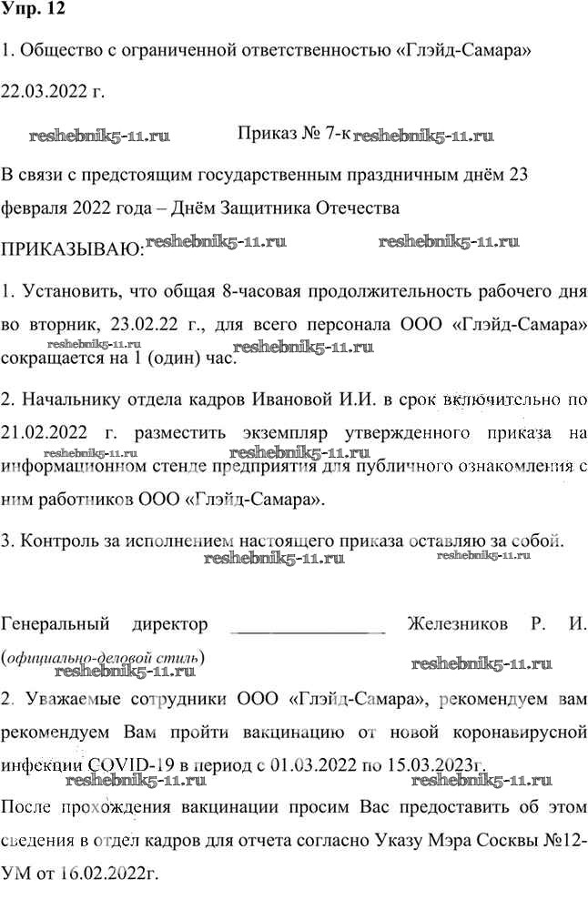 Готовая домашняя работа с ответами по Русскому языку за 8 класс Быстрова, Кибирева, Воителева Учебник Инновационная школа Часть 1, 2 Русское слово 2019 ФГОС - Упражнения 12