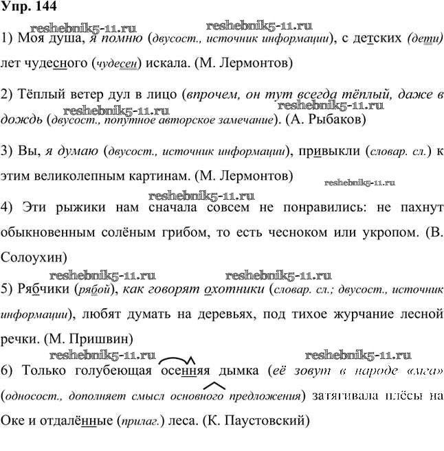 Готовая домашняя работа с ответами по Русскому языку за 8 класс Быстрова, Кибирева, Воителева Учебник Инновационная школа Часть 1, 2 Русское слово 2019 ФГОС - Упражнения 144