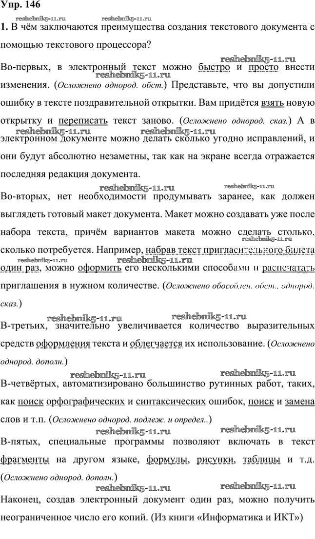 Готовая домашняя работа с ответами по Русскому языку за 8 класс Быстрова, Кибирева, Воителева Учебник Инновационная школа Часть 1, 2 Русское слово 2019 ФГОС - Упражнения 146