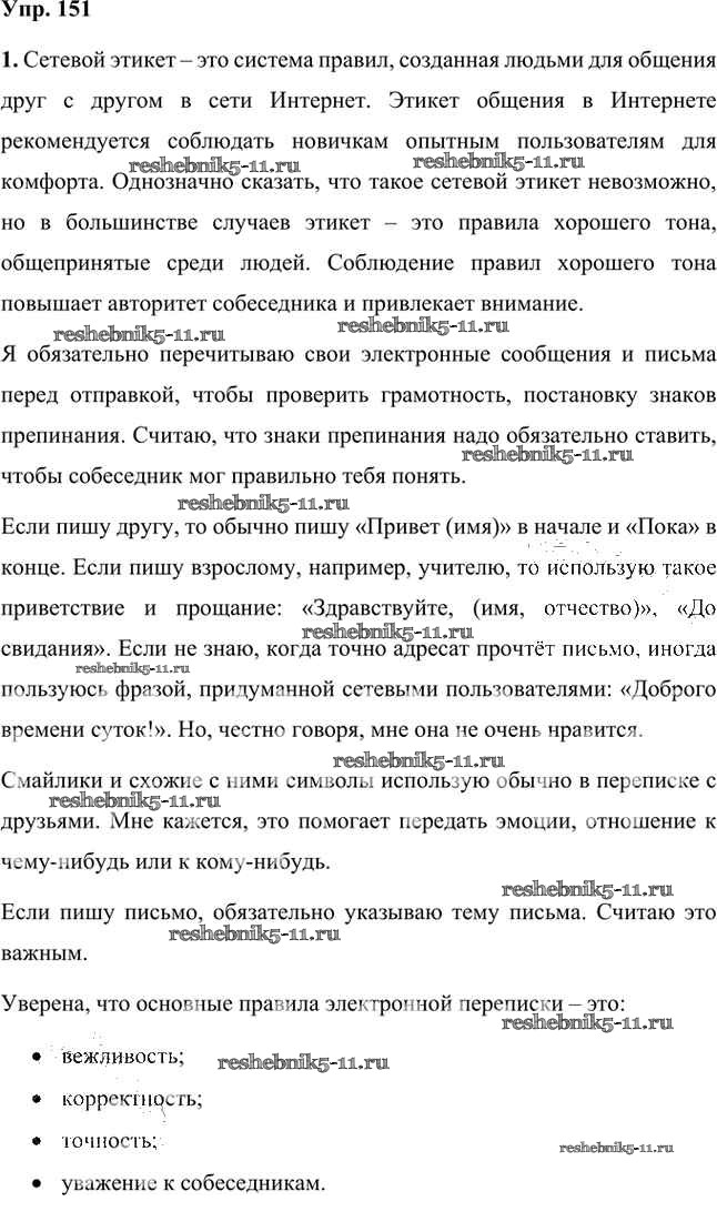 Готовая домашняя работа с ответами по Русскому языку за 8 класс Быстрова, Кибирева, Воителева Учебник Инновационная школа Часть 1, 2 Русское слово 2019 ФГОС - Упражнения 151