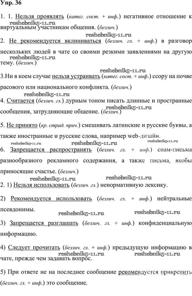Готовая домашняя работа с ответами по Русскому языку за 8 класс Быстрова, Кибирева, Воителева Учебник Инновационная школа Часть 1, 2 Русское слово 2019 ФГОС - Упражнения 36