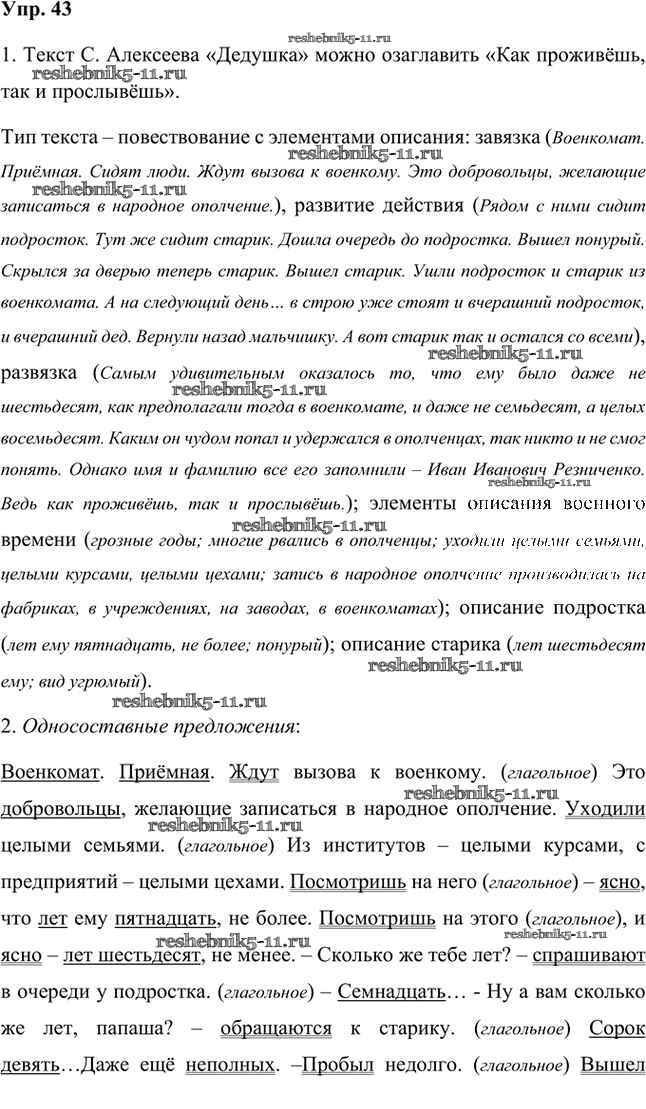 Готовая домашняя работа с ответами по Русскому языку за 8 класс Быстрова, Кибирева, Воителева Учебник Инновационная школа Часть 1, 2 Русское слово 2019 ФГОС - Упражнения 43