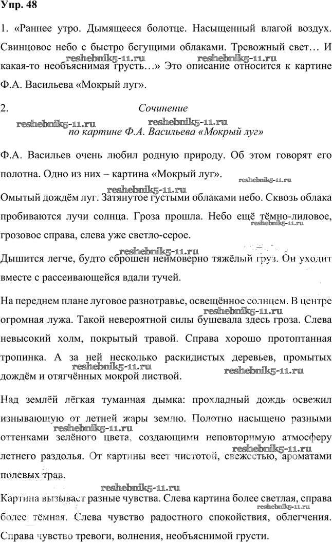 Готовая домашняя работа с ответами по Русскому языку за 8 класс Быстрова, Кибирева, Воителева Учебник Инновационная школа Часть 1, 2 Русское слово 2019 ФГОС - Упражнения 48