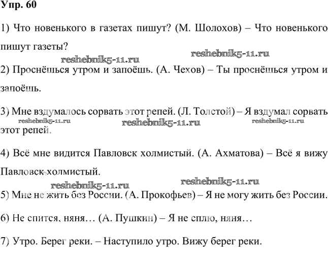 Готовая домашняя работа с ответами по Русскому языку за 8 класс Быстрова, Кибирева, Воителева Учебник Инновационная школа Часть 1, 2 Русское слово 2019 ФГОС - Упражнения 60