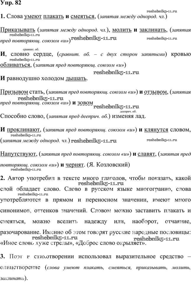 Готовая домашняя работа с ответами по Русскому языку за 8 класс Быстрова, Кибирева, Воителева Учебник Инновационная школа Часть 1, 2 Русское слово 2019 ФГОС - Упражнения 82