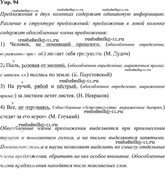 Готовая домашняя работа с ответами по Русскому языку за 8 класс Быстрова, Кибирева, Воителева Учебник Инновационная школа Часть 1, 2 Русское слово 2019 ФГОС - Упражнения 94