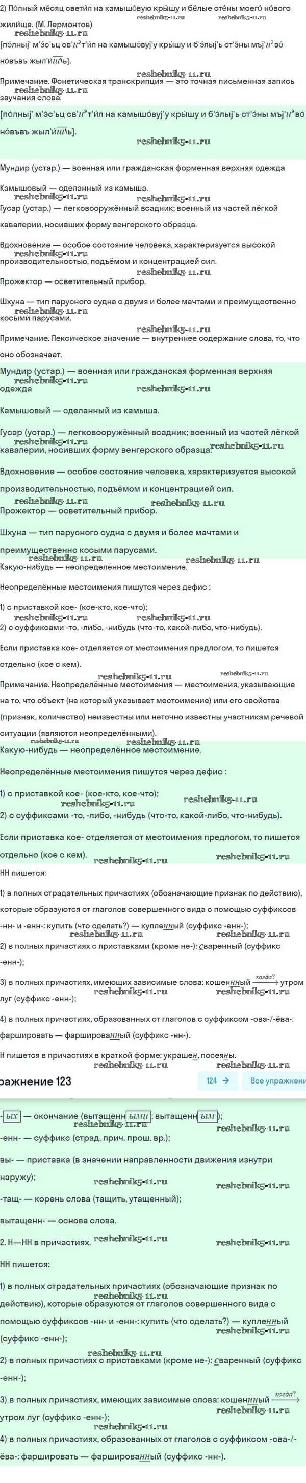 Готовая домашняя работа с ответами по Русскому языку за 8 класс Разумовская, Львова, Капинос, Львов Учебник Вертикаль Дрофа 2015 ФГОС - Упражнения 123