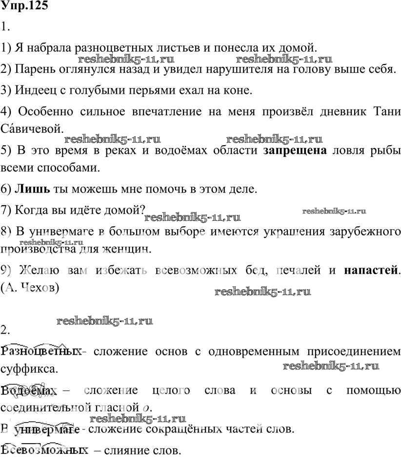 Готовая домашняя работа с ответами по Русскому языку за 8 класс Разумовская, Львова, Капинос, Львов Учебник Вертикаль Дрофа 2013 ФГОС - Упражнения 125