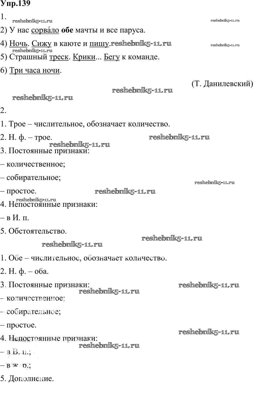 Готовая домашняя работа с ответами по Русскому языку за 8 класс Разумовская, Львова, Капинос, Львов Учебник Вертикаль Дрофа 2013 ФГОС - Упражнения 139