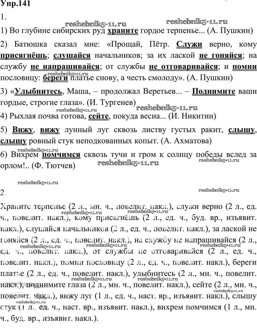 Готовая домашняя работа с ответами по Русскому языку за 8 класс Разумовская, Львова, Капинос, Львов Учебник Вертикаль Дрофа 2013 ФГОС - Упражнения 141