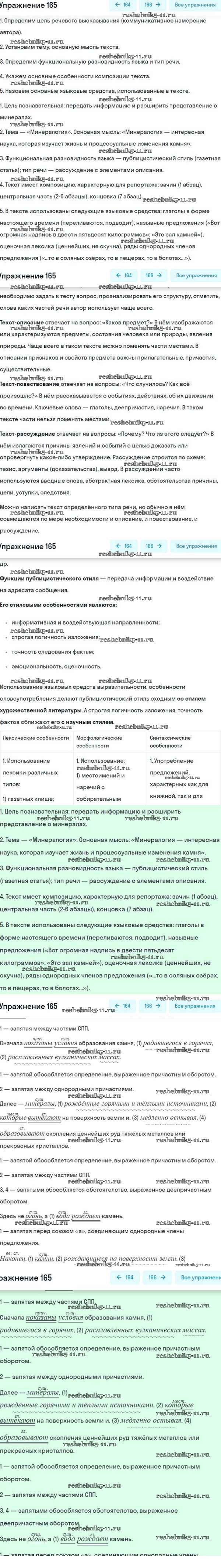 Готовая домашняя работа с ответами по Русскому языку за 8 класс Разумовская, Львова, Капинос, Львов Учебник Вертикаль Дрофа 2015 ФГОС - Упражнения 165