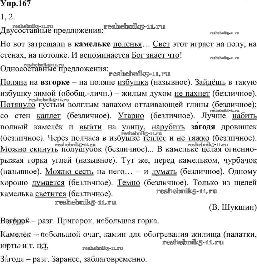 Готовая домашняя работа с ответами по Русскому языку за 8 класс Разумовская, Львова, Капинос, Львов Учебник Вертикаль Дрофа 2013 ФГОС - Упражнения 167