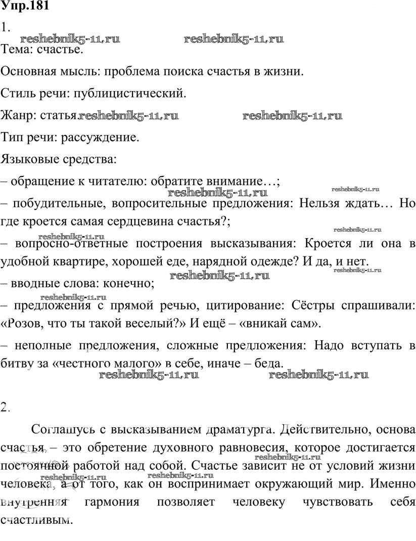 Готовая домашняя работа с ответами по Русскому языку за 8 класс Разумовская, Львова, Капинос, Львов Учебник Вертикаль Дрофа 2013 ФГОС - Упражнения 181