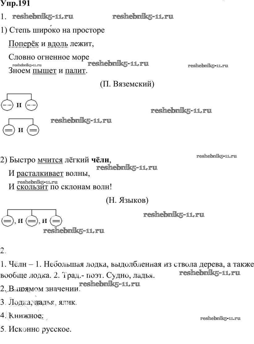 Готовая домашняя работа с ответами по Русскому языку за 8 класс Разумовская, Львова, Капинос, Львов Учебник Вертикаль Дрофа 2013 ФГОС - Упражнения 191