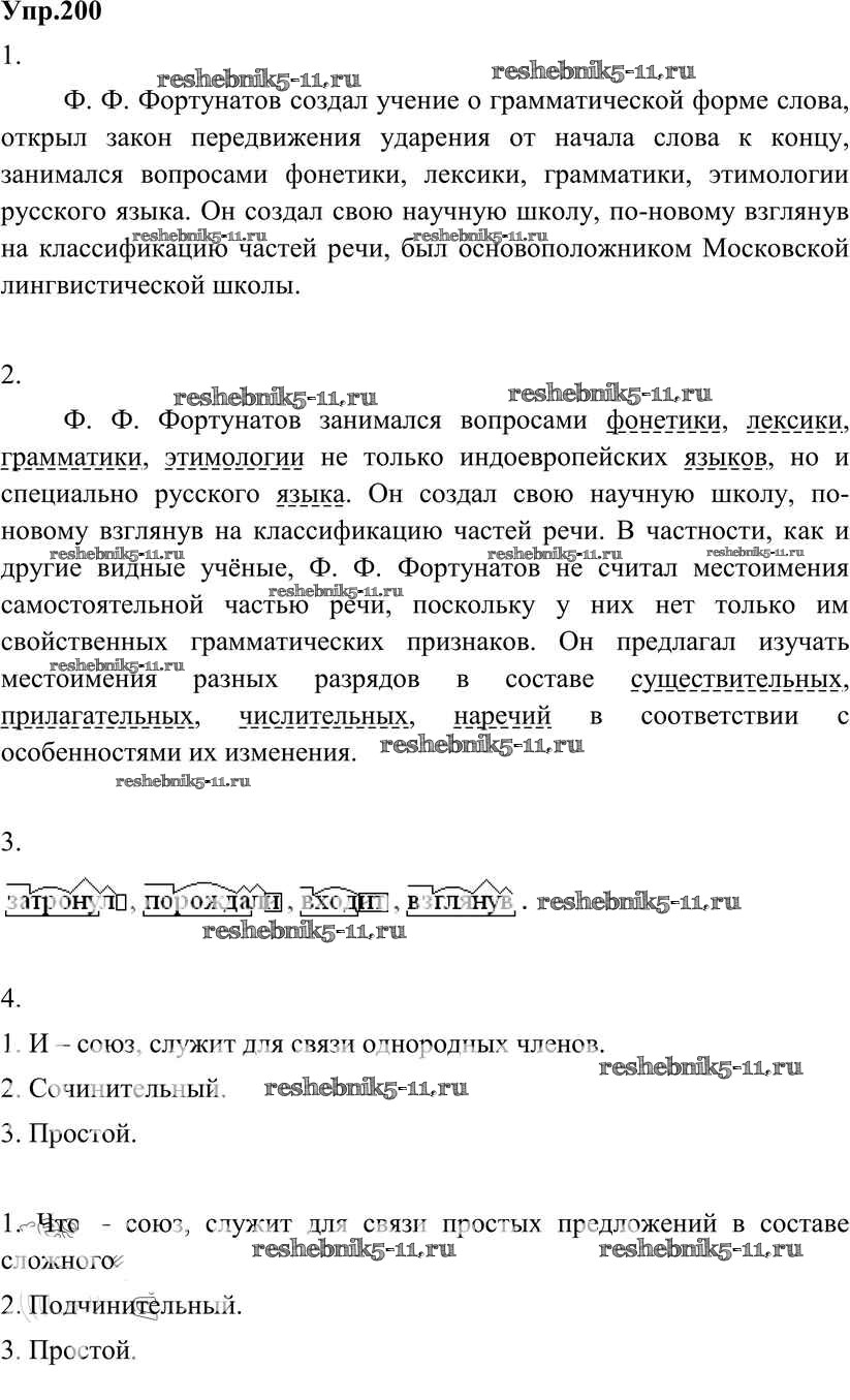 Готовая домашняя работа с ответами по Русскому языку за 8 класс Разумовская, Львова, Капинос, Львов Учебник Вертикаль Дрофа 2013 ФГОС - Упражнения 200