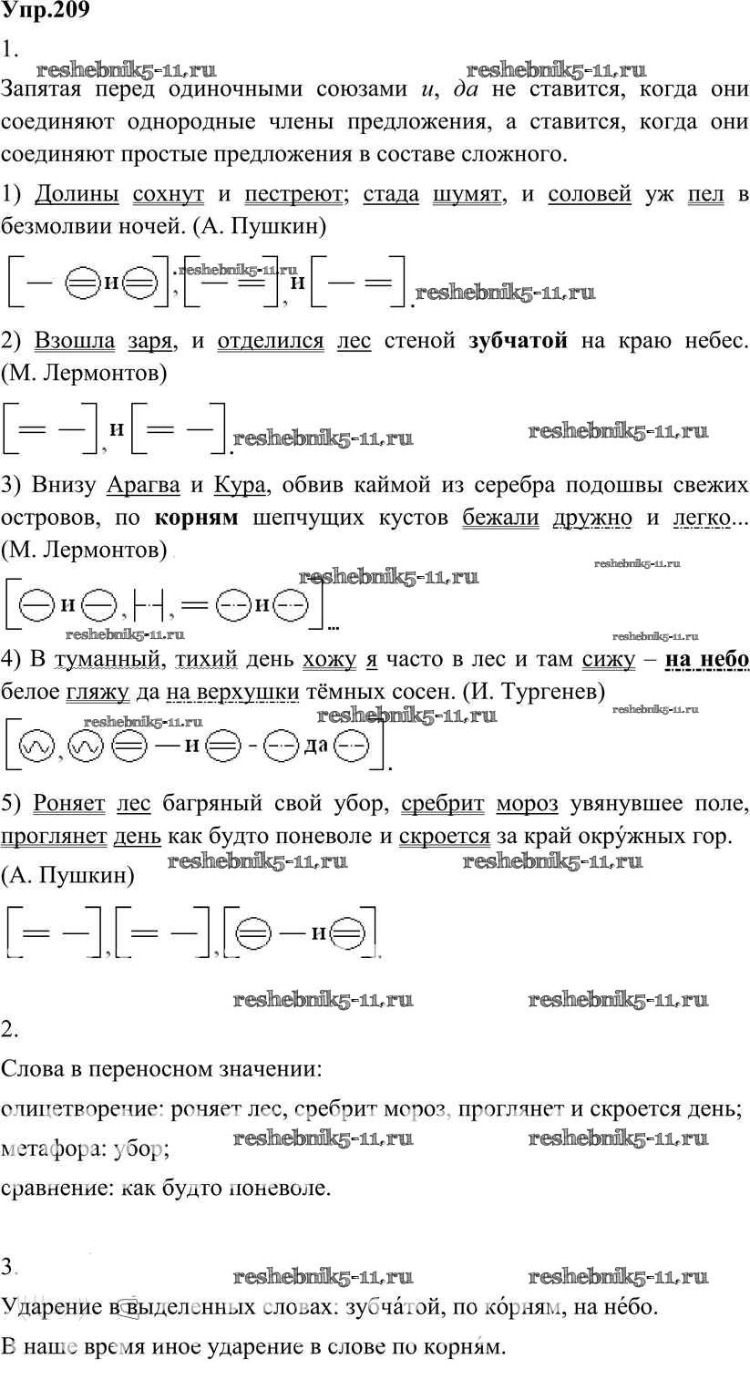 Готовая домашняя работа с ответами по Русскому языку за 8 класс Разумовская, Львова, Капинос, Львов Учебник Вертикаль Дрофа 2013 ФГОС - Упражнения 209