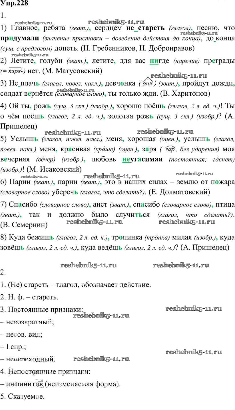 Готовая домашняя работа с ответами по Русскому языку за 8 класс Разумовская, Львова, Капинос, Львов Учебник Вертикаль Дрофа 2013 ФГОС - Упражнения 228