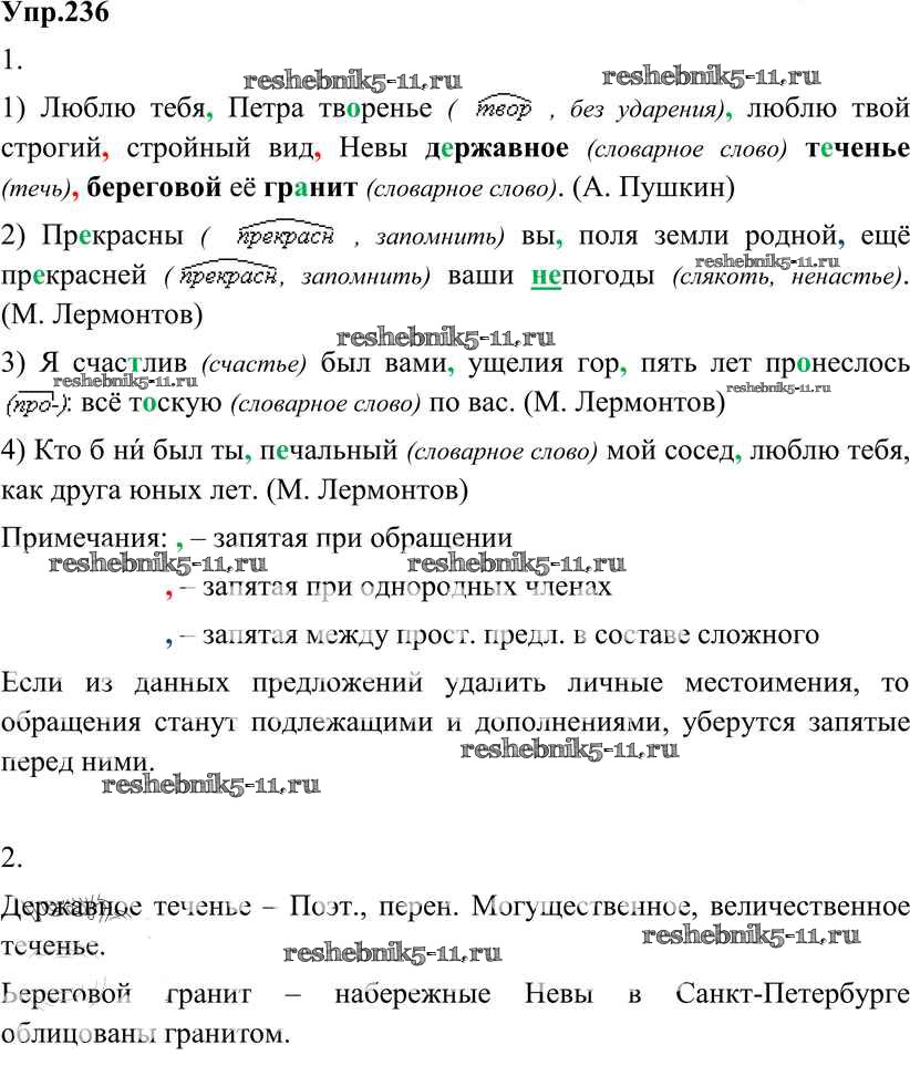 Готовая домашняя работа с ответами по Русскому языку за 8 класс Разумовская, Львова, Капинос, Львов Учебник Вертикаль Дрофа 2013 ФГОС - Упражнения 236