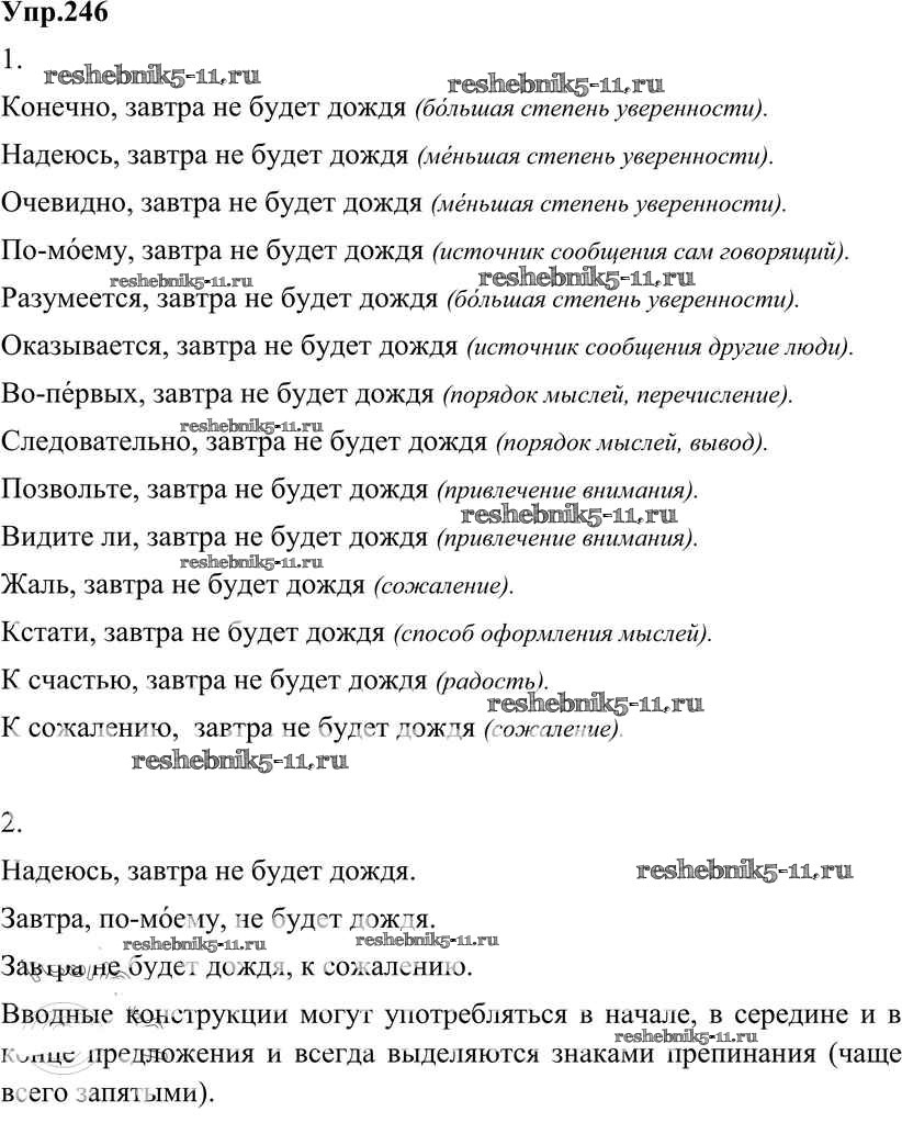 Готовая домашняя работа с ответами по Русскому языку за 8 класс Разумовская, Львова, Капинос, Львов Учебник Вертикаль Дрофа 2013 ФГОС - Упражнения 246