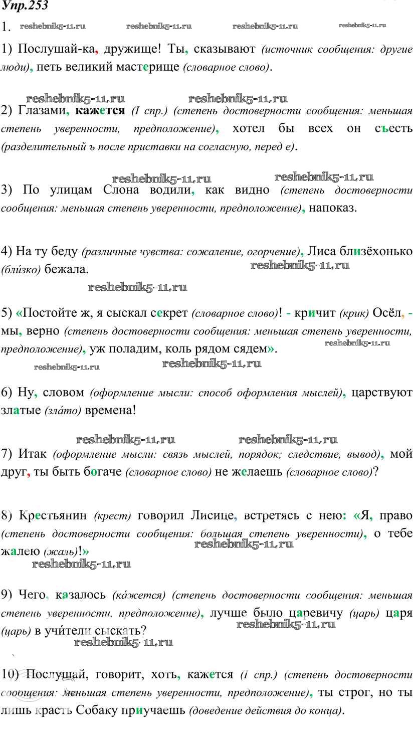 Готовая домашняя работа с ответами по Русскому языку за 8 класс Разумовская, Львова, Капинос, Львов Учебник Вертикаль Дрофа 2013 ФГОС - Упражнения 253