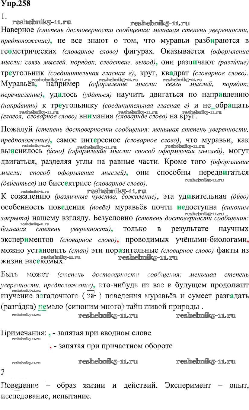 Готовая домашняя работа с ответами по Русскому языку за 8 класс Разумовская, Львова, Капинос, Львов Учебник Вертикаль Дрофа 2013 ФГОС - Упражнения 258