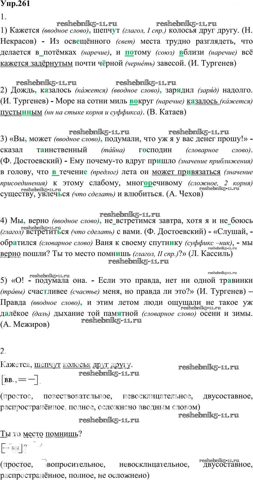 Готовая домашняя работа с ответами по Русскому языку за 8 класс Разумовская, Львова, Капинос, Львов Учебник Вертикаль Дрофа 2013 ФГОС - Упражнения 261