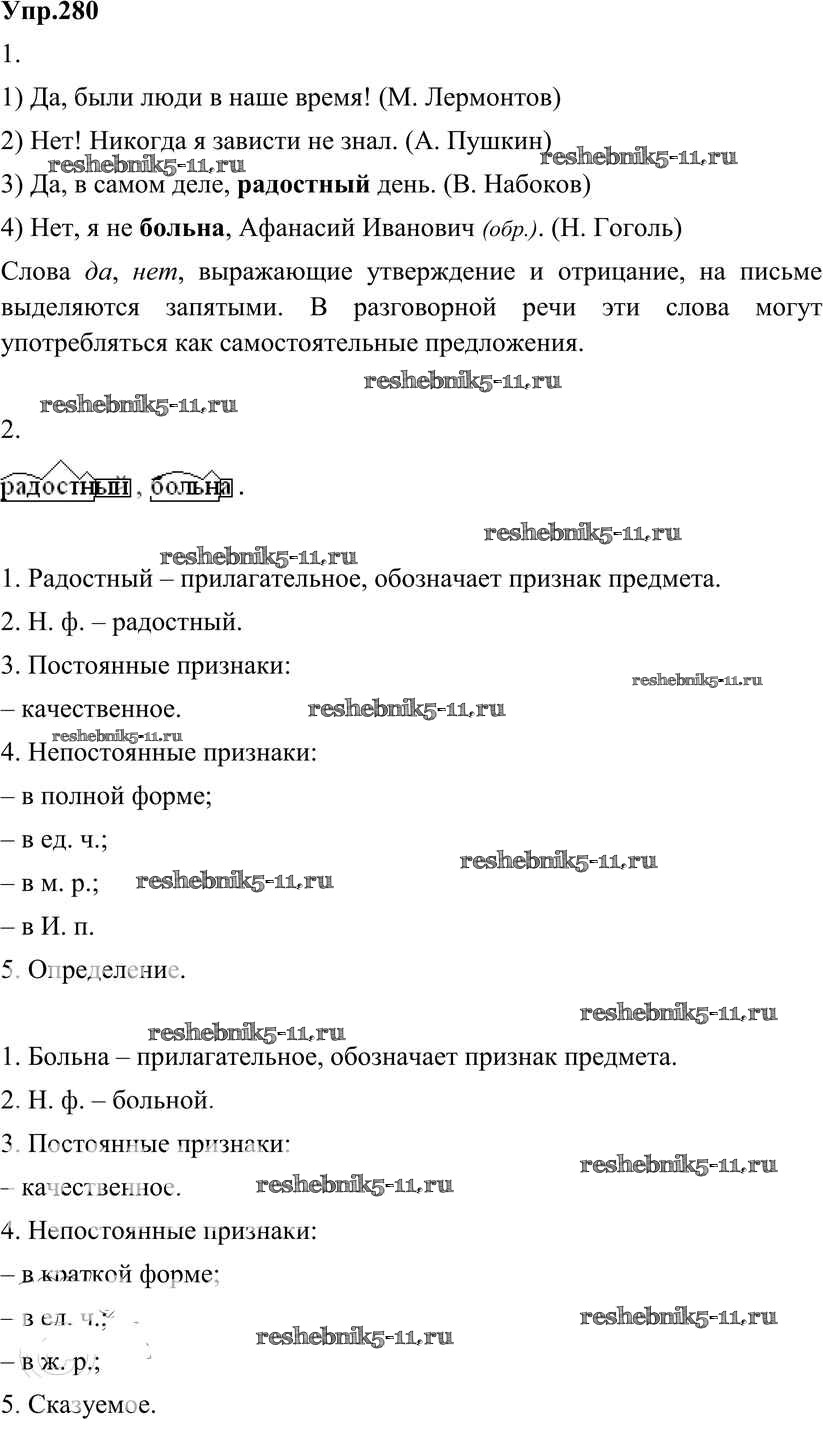 Готовая домашняя работа с ответами по Русскому языку за 8 класс Разумовская, Львова, Капинос, Львов Учебник Вертикаль Дрофа 2013 ФГОС - Упражнения 280