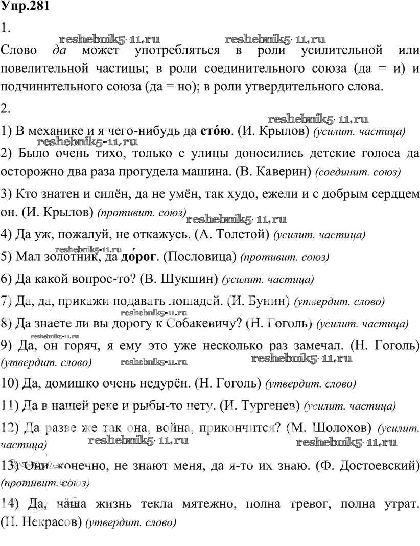 Готовая домашняя работа с ответами по Русскому языку за 8 класс Разумовская, Львова, Капинос, Львов Учебник Вертикаль Дрофа 2013 ФГОС - Упражнения 281