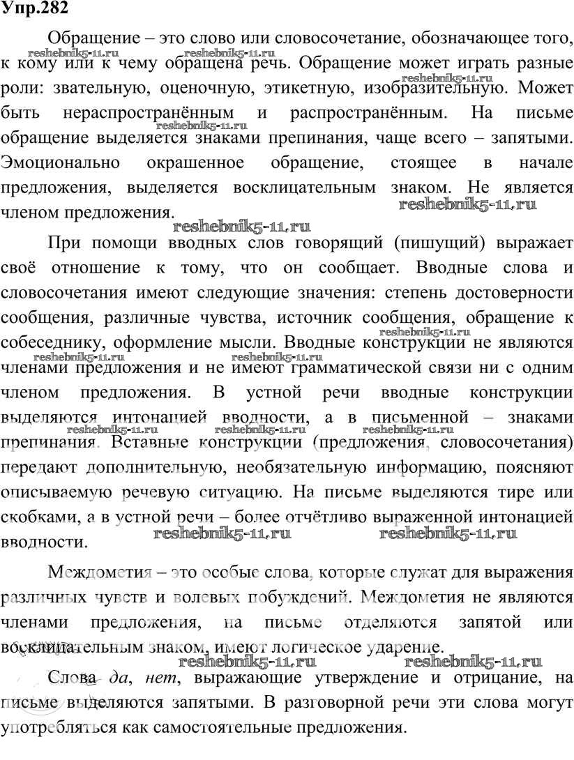 Готовая домашняя работа с ответами по Русскому языку за 8 класс Разумовская, Львова, Капинос, Львов Учебник Вертикаль Дрофа 2013 ФГОС - Упражнения 282