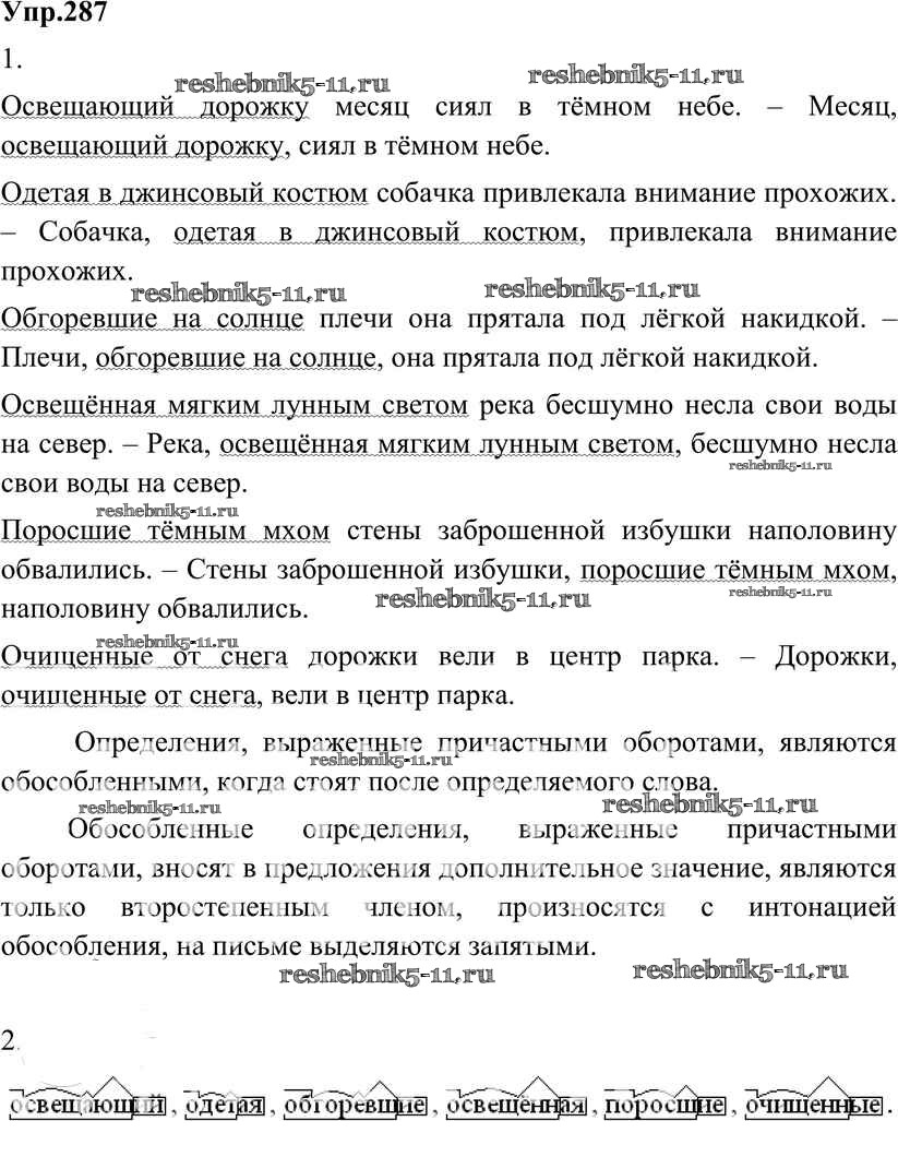 Готовая домашняя работа с ответами по Русскому языку за 8 класс Разумовская, Львова, Капинос, Львов Учебник Вертикаль Дрофа 2013 ФГОС - Упражнения 287