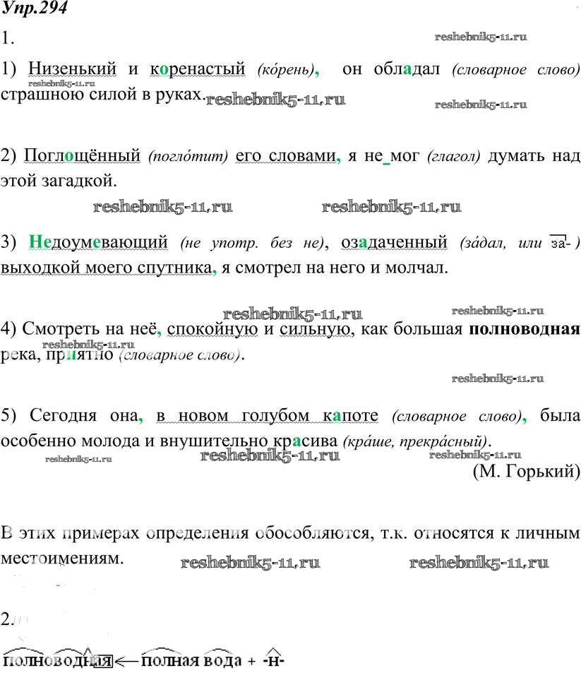 Готовая домашняя работа с ответами по Русскому языку за 8 класс Разумовская, Львова, Капинос, Львов Учебник Вертикаль Дрофа 2013 ФГОС - Упражнения 294