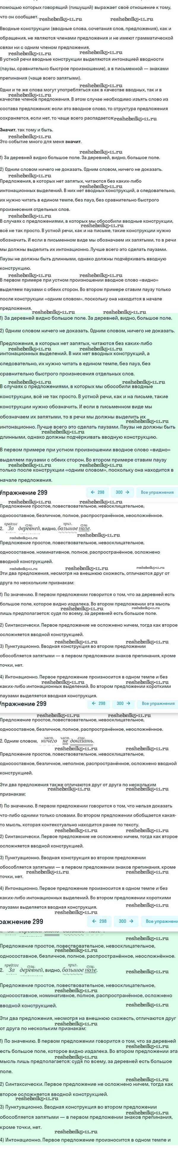 Готовая домашняя работа с ответами по Русскому языку за 8 класс Разумовская, Львова, Капинос, Львов Учебник Вертикаль Дрофа 2015 ФГОС - Упражнения 299