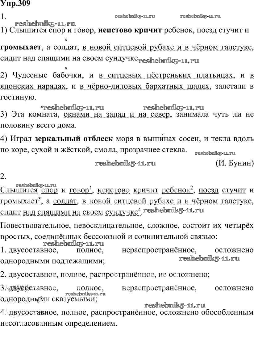 Готовая домашняя работа с ответами по Русскому языку за 8 класс Разумовская, Львова, Капинос, Львов Учебник Вертикаль Дрофа 2013 ФГОС - Упражнения 309