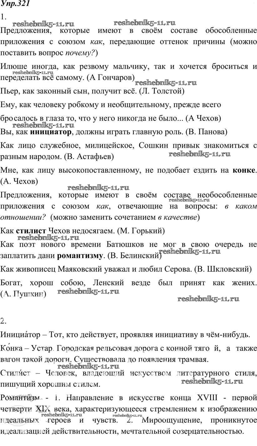 Готовая домашняя работа с ответами по Русскому языку за 8 класс Разумовская, Львова, Капинос, Львов Учебник Вертикаль Дрофа 2013 ФГОС - Упражнения 321