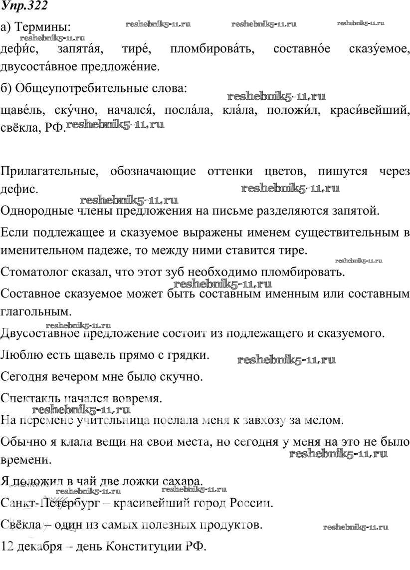 Готовая домашняя работа с ответами по Русскому языку за 8 класс Разумовская, Львова, Капинос, Львов Учебник Вертикаль Дрофа 2013 ФГОС - Упражнения 322