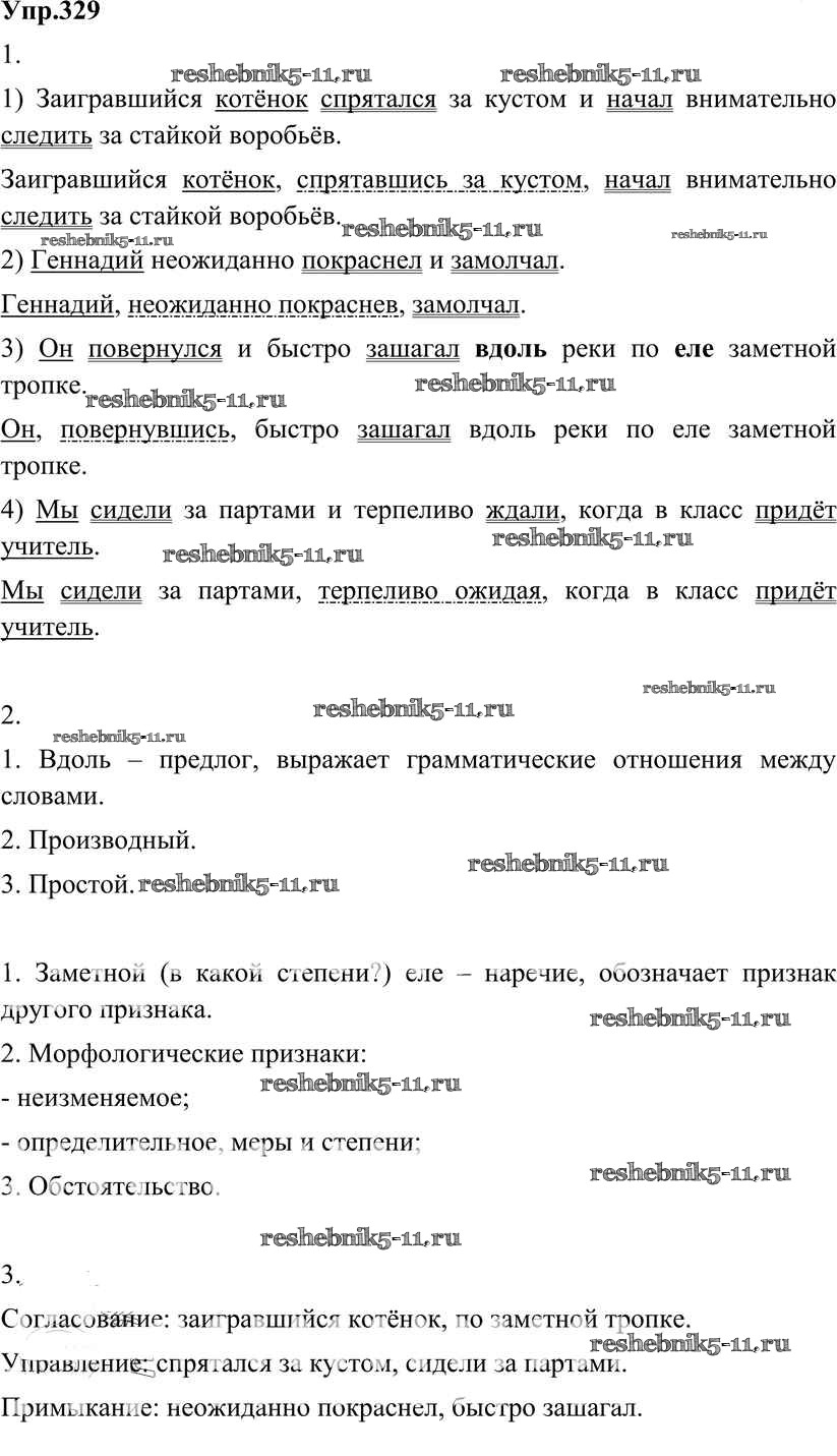 Готовая домашняя работа с ответами по Русскому языку за 8 класс Разумовская, Львова, Капинос, Львов Учебник Вертикаль Дрофа 2013 ФГОС - Упражнения 329