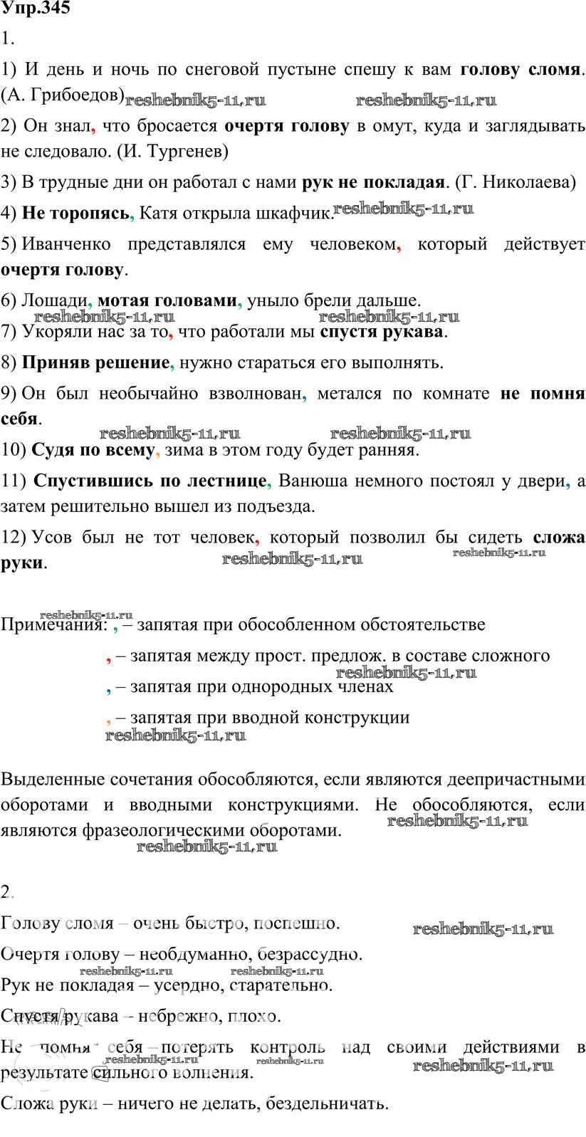 Готовая домашняя работа с ответами по Русскому языку за 8 класс Разумовская, Львова, Капинос, Львов Учебник Вертикаль Дрофа 2013 ФГОС - Упражнения 345