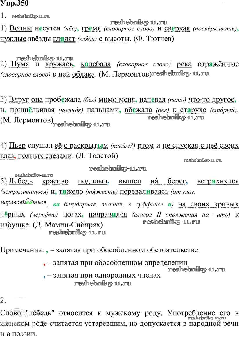 Готовая домашняя работа с ответами по Русскому языку за 8 класс Разумовская, Львова, Капинос, Львов Учебник Вертикаль Дрофа 2013 ФГОС - Упражнения 350