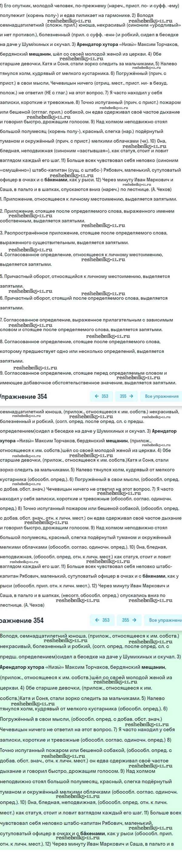 Готовая домашняя работа с ответами по Русскому языку за 8 класс Разумовская, Львова, Капинос, Львов Учебник Вертикаль Дрофа 2015 ФГОС - Упражнения 354