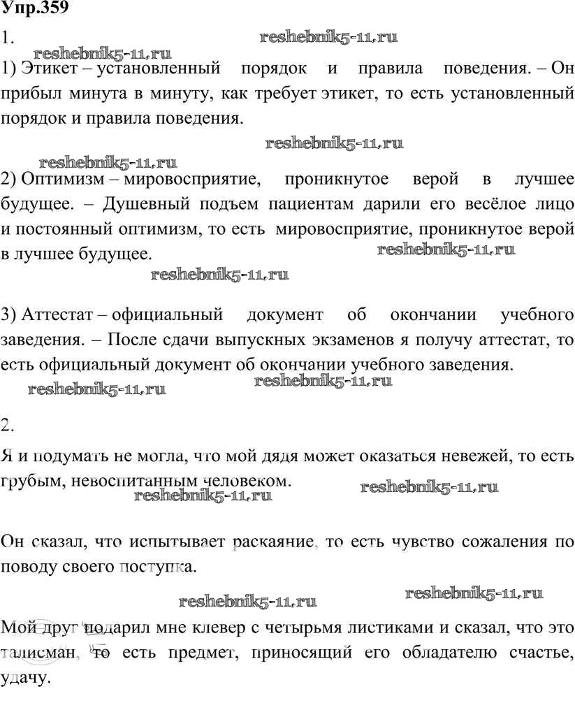 Готовая домашняя работа с ответами по Русскому языку за 8 класс Разумовская, Львова, Капинос, Львов Учебник Вертикаль Дрофа 2013 ФГОС - Упражнения 359