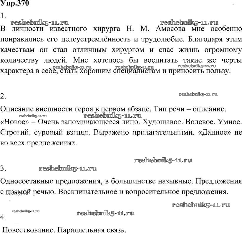 Готовая домашняя работа с ответами по Русскому языку за 8 класс Разумовская, Львова, Капинос, Львов Учебник Вертикаль Дрофа 2013 ФГОС - Упражнения 370