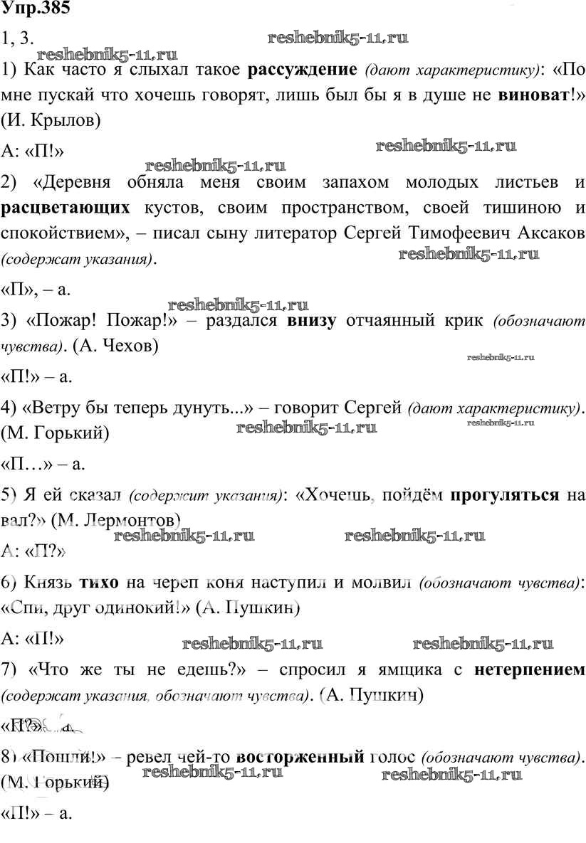 Готовая домашняя работа с ответами по Русскому языку за 8 класс Разумовская, Львова, Капинос, Львов Учебник Вертикаль Дрофа 2013 ФГОС - Упражнения 385