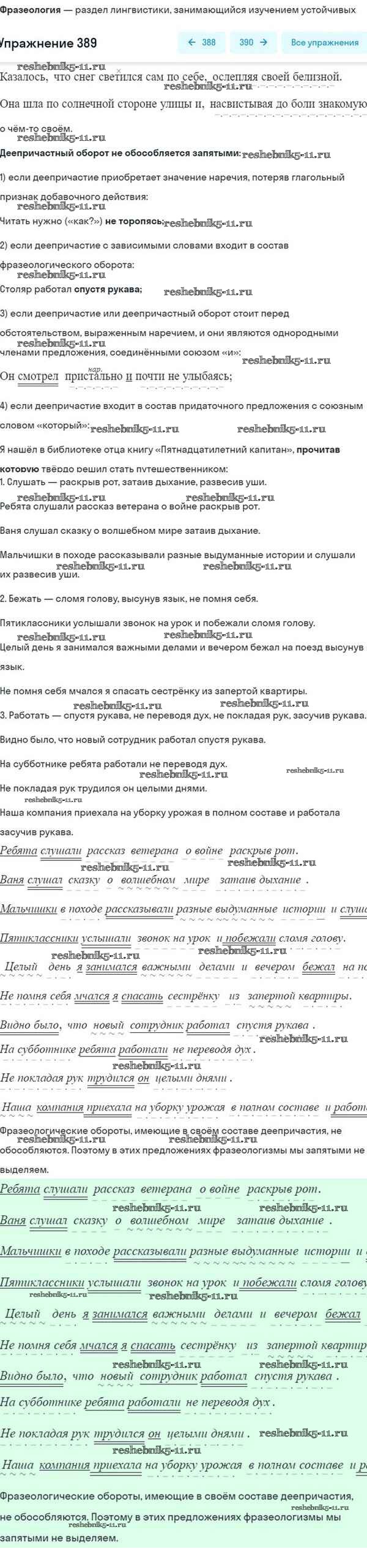 Готовая домашняя работа с ответами по Русскому языку за 8 класс Разумовская, Львова, Капинос, Львов Учебник Вертикаль Дрофа 2015 ФГОС - Упражнения 389