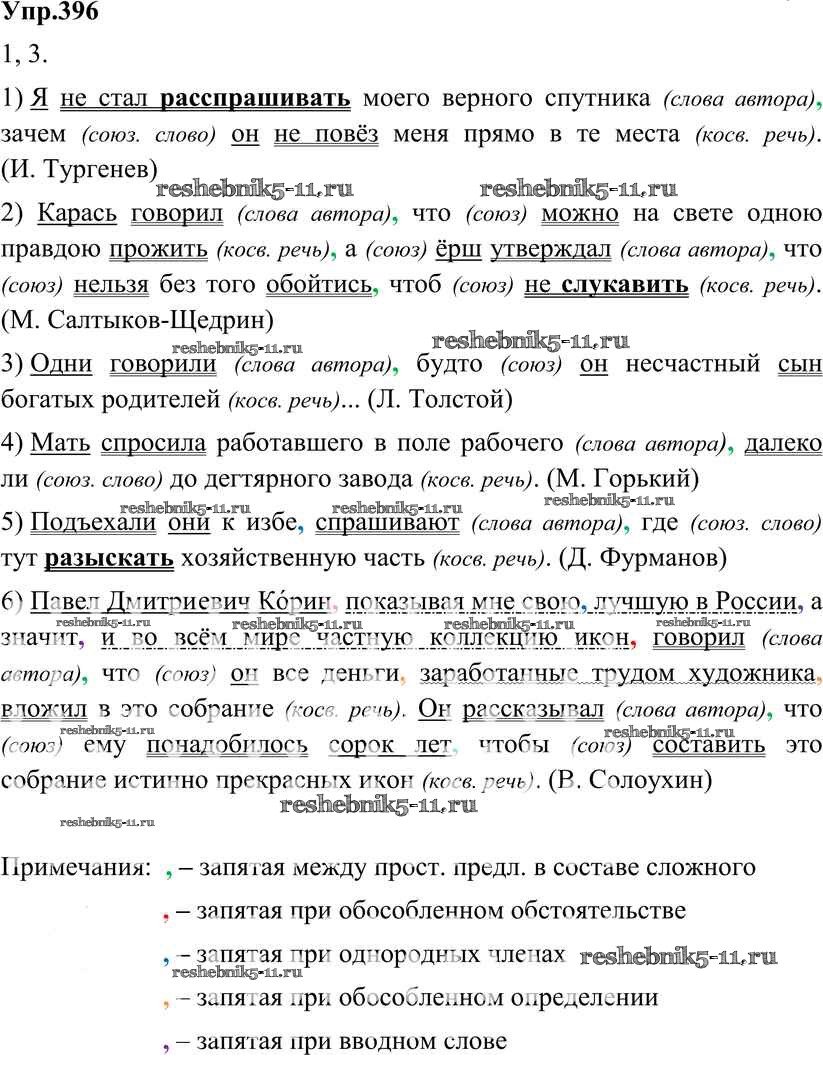 Готовая домашняя работа с ответами по Русскому языку за 8 класс Разумовская, Львова, Капинос, Львов Учебник Вертикаль Дрофа 2013 ФГОС - Упражнения 396