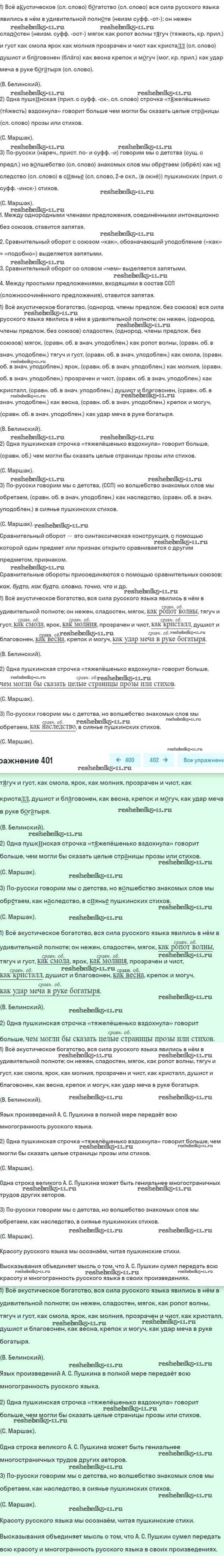 Готовая домашняя работа с ответами по Русскому языку за 8 класс Разумовская, Львова, Капинос, Львов Учебник Вертикаль Дрофа 2015 ФГОС - Упражнения 401