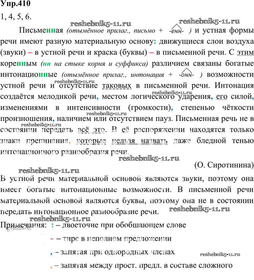 Готовая домашняя работа с ответами по Русскому языку за 8 класс Разумовская, Львова, Капинос, Львов Учебник Вертикаль Дрофа 2013 ФГОС - Упражнения 410