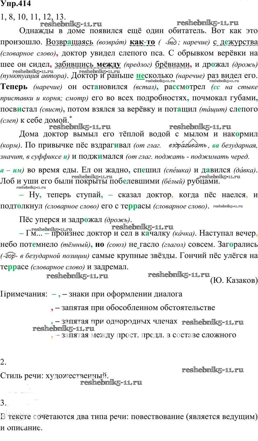 Готовая домашняя работа с ответами по Русскому языку за 8 класс Разумовская, Львова, Капинос, Львов Учебник Вертикаль Дрофа 2013 ФГОС - Упражнения 414